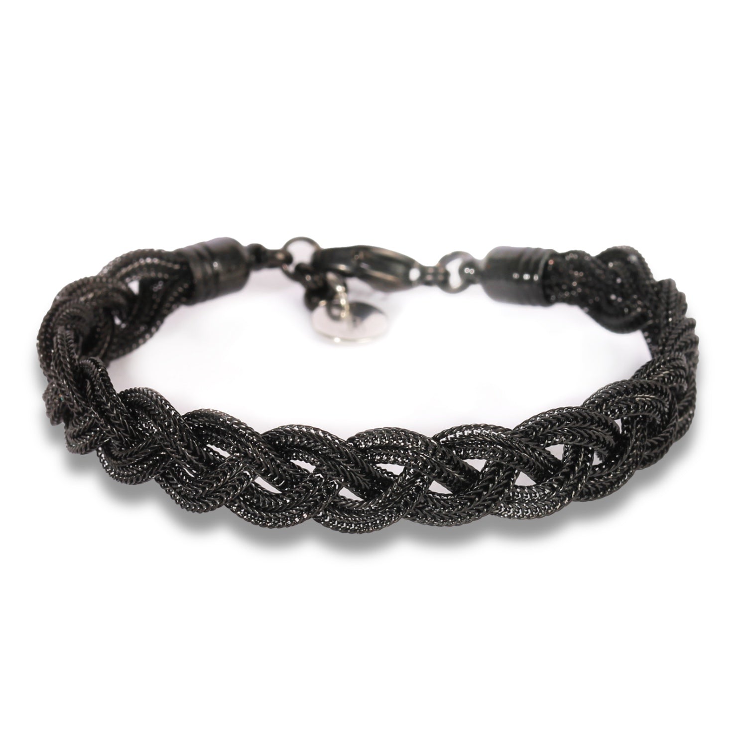 Bracciale intrecciato a mano con fili in acciaio.